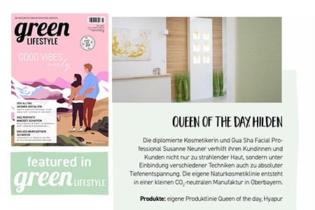 Cleane Produkte & nachhaltige Arbeitsweise schreibt das „green LIFESTYLE Magazin 03/23“: Mit neun weiteren Spas & Studios ist Queen of the Day deutschlandweit gewählt worden. 2 x München • 2x Berlin • Bremen • Hamburg • Leipzig • Dresden • Köln • HILDEN Wir freuen uns, dass wir mit den wundervollen Gesichtsbehandlungen weiter für Sie/Dich […]